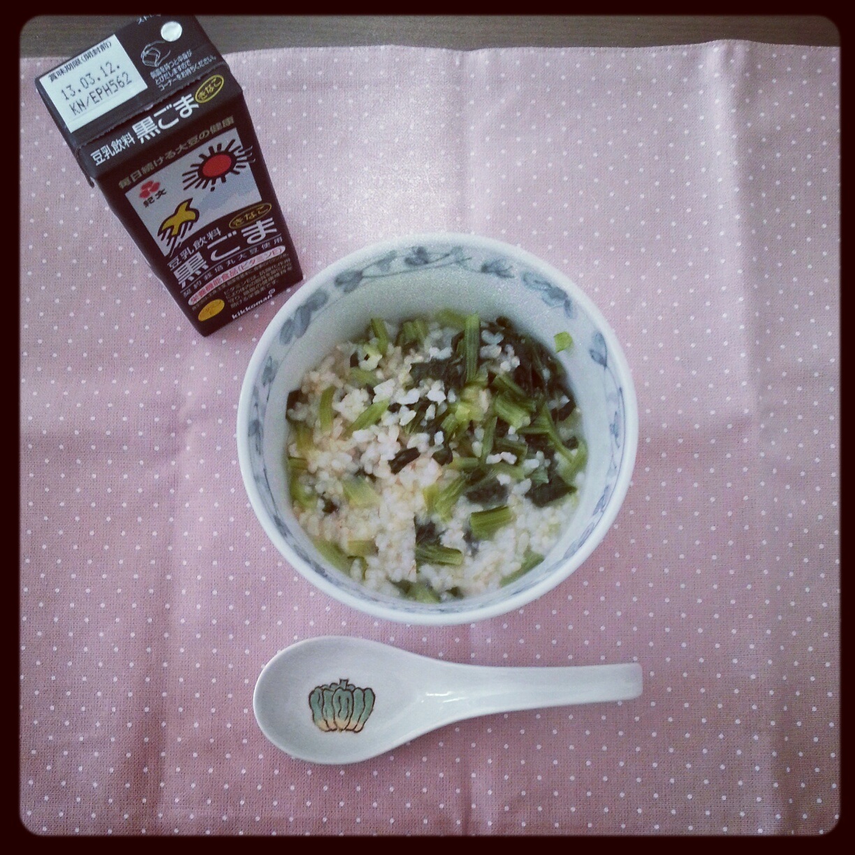 七種の日 七草粥を作りました。お米は玄米で♡玄米は少量でも食べごたえがあるし、お腹にも優しいので大好き!お米、約1ヶ月ぶりに食べたの。お腹ビックリ ←レンゲで食べたんだけどレンゲ見た瞬間、章ちゃんのママが レンゲのことメレンゲって言うの思い出して、にやけちゃった、!