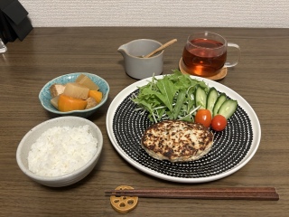 久しぶりに投稿!何でもない夜ごはん。紫蘇入り豆腐ハンバーグ朝に作っておいた煮物家族の帰りが遅いので先にいただきます。最近和の器が好きでちょこちょこ集めてる。もともと洋食器が好きだったけど和食器もいいなぁと。料理するのも楽しくなる。
